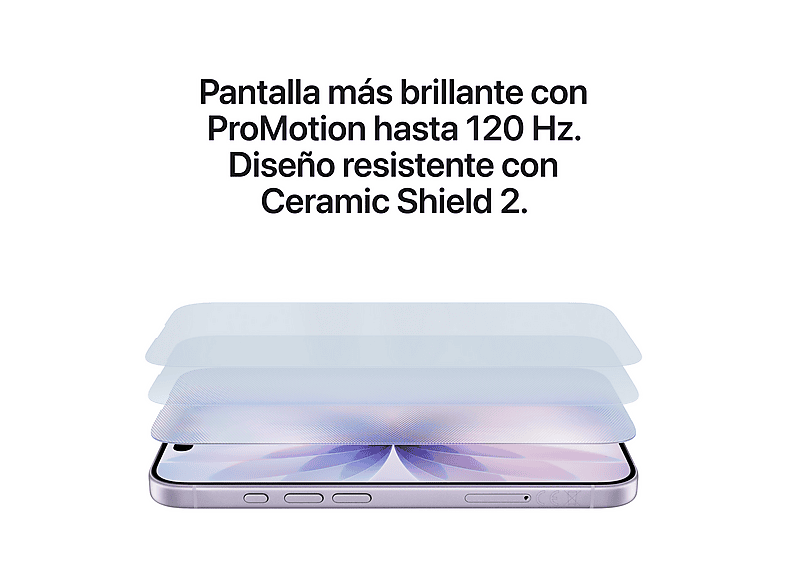 iPhone 17. Subidón de color. El nuevo iPhone 17, con sus bordes redondeados, marco más fino y materiales tan sólidos como el Ceramic Shield 2 en la parte delantera, es atractivo y resistente a partes iguales. Las posibilidades de su pantalla Super Retina XDR de 6,3 pulgadas no conocen límites.
