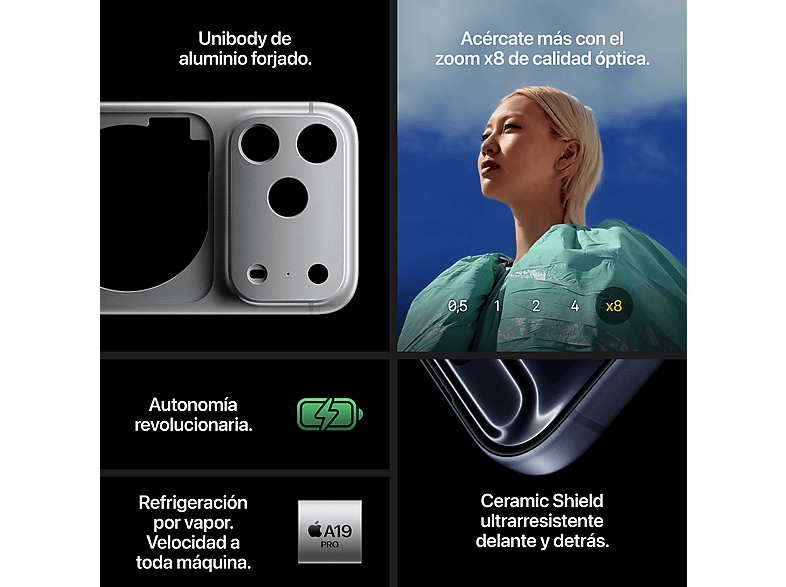El iPhone 17 Pro y el iPhone 17 Pro Max llegan pisando fuerte con un rediseño total desde la propia base. Su nueva estructura Unibody de aluminio forjado térmicamente eleva la resistencia, el rendimiento y la autonomía a una nueva dimensión. Todo un hito de la ingeniería para crear los modelos de iPhone más potentes de la historia.