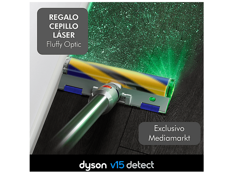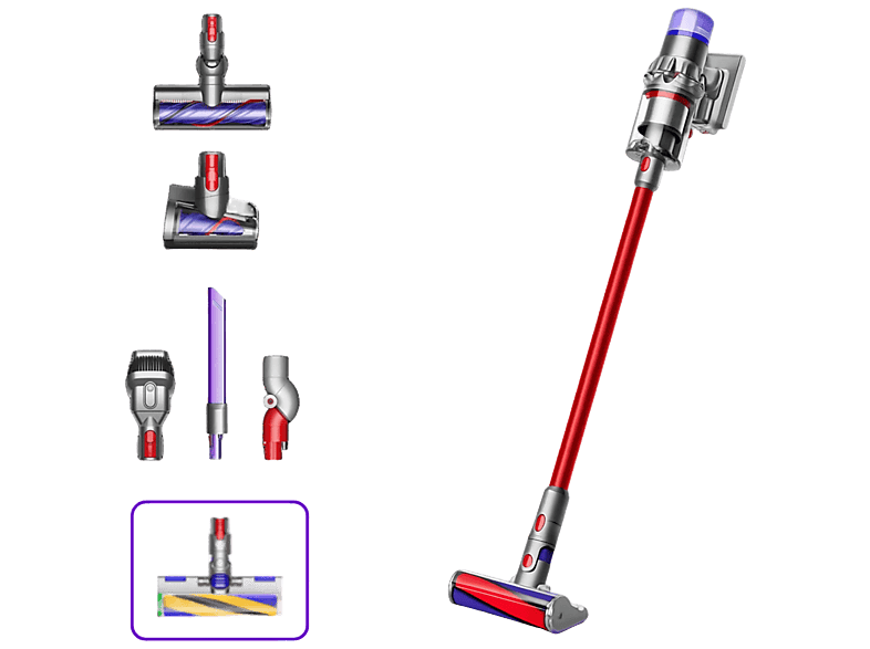 | Contenido | 1x Aspiradora Dyson sin cable, 1x Cepillo Digital Motorbar™, 1x Minicepillo motorizado, 1x Adaptador de bajo alcance, 1x Accesorio multifunción, 1x Rinconera, 1x Práctico puerto de carga. DE REGALO: 1x Cepillo Optic Fluffy |