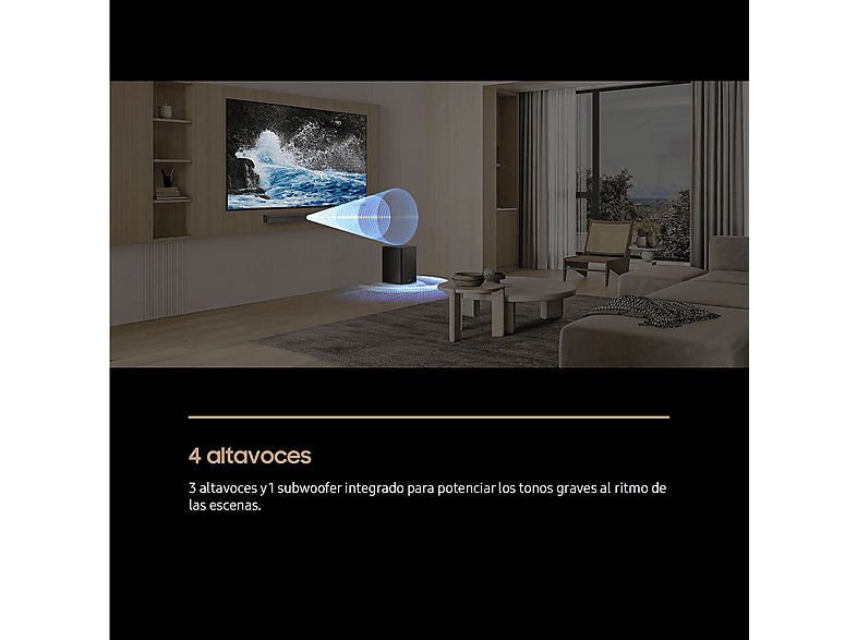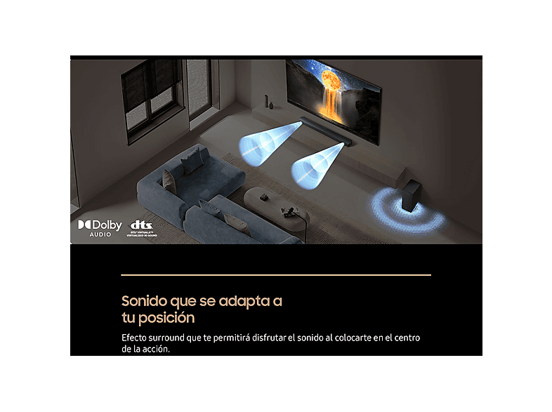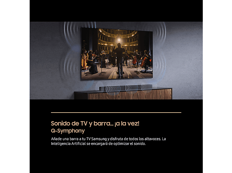 Añade una barra a tu TV Samsung y disfruta de todos los altavoces. La AI separa la voz y los sonidos de fondo para reproducirlos a través del canal óptimo.