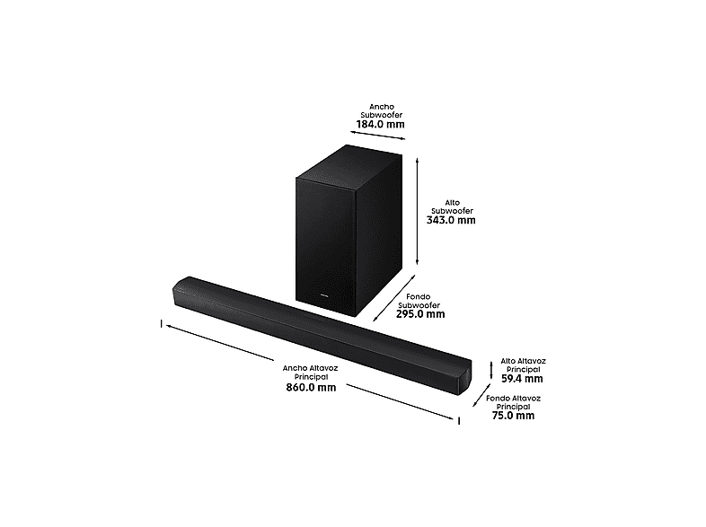 Barra de sonido - Samsung HW-B66CF/ZF, Bluetooth, Inalámbrico, 370 W, Subwoofer y Dolby Atmos inalámbrico, 3.1 canales, Negro