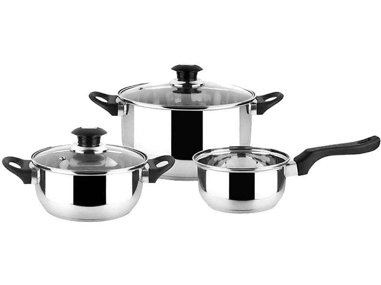 | Contenido | 1x Cacerola con tapa de 24 cm, 1x Cacerola con tapa de 18 cm, 1x Cazo de 14 cm. |