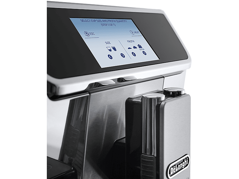 Exclusivo sistema de espuma de leche LatteCrema Depósito de leche térmico de doble pared Arranque automatico Sistema de Latte Crema De'Longhi Programación de la dureza del agua Limpieza y descalcificación automatica |
