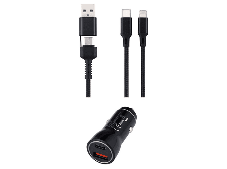 Cargador coche - ISY ICC-5000-CC, Universal, Carga rápida, USB-A/C a USB-C y Lightning, Negro