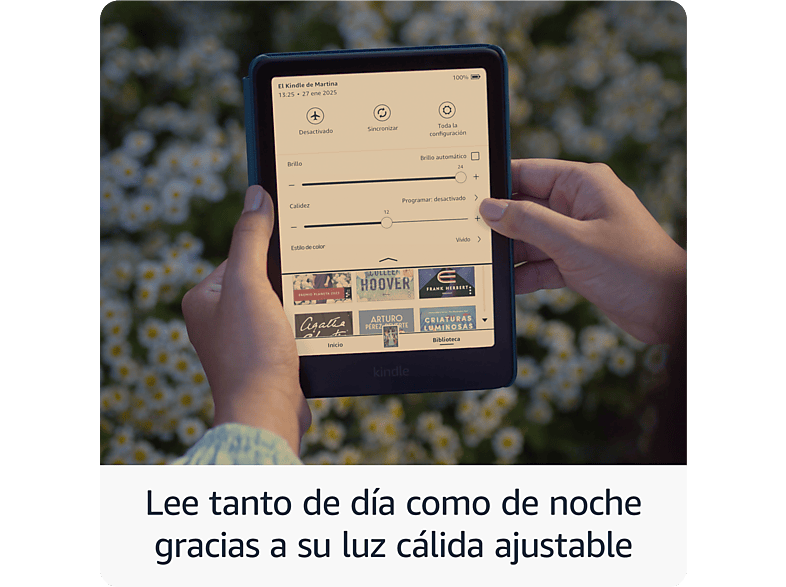 Regula el tono de la pantalla desde luz blanca hasta cálida luz ámbar. Ya sea bajo el sol o en la oscuridad, el Kindle Colorsoft garantiza una experiencia de lectura agradable, adaptándose a cualquier ambiente.
