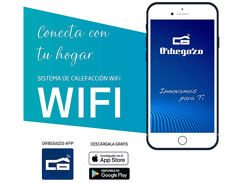 Podrás controlar en todo momento el ambiente que deseas estés donde estés gracias a su conexión inalámbrica WiFi. Vincula tu dispositivo móvil al emisor térmico a través de nuestra App y comienza a disfrutar de todas las ventajas que ofrece la nueva gama de calefacción Orbegozo.