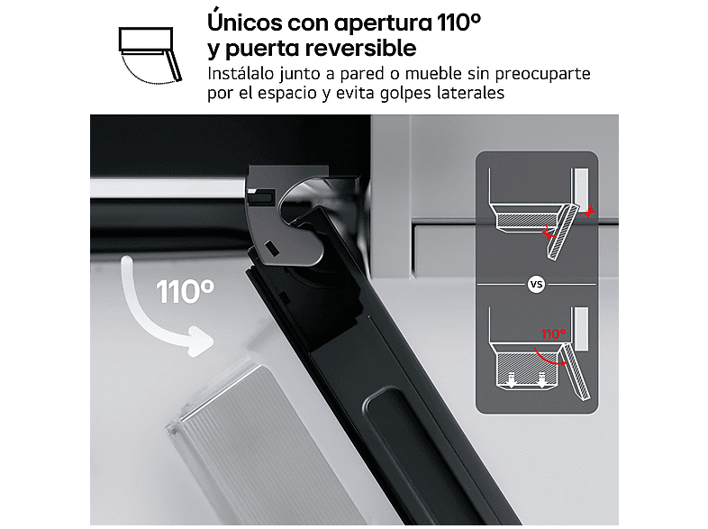 Instálalo junto a pared o mueble sin preocuparte por el espacio y evita golpes laterales.