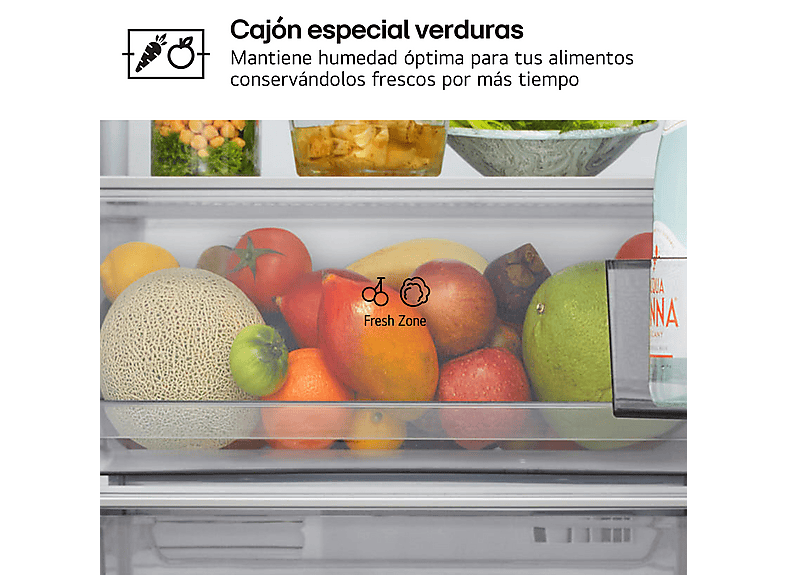 Frigorífico combi LG GBBSJ21DPY con Garantía de por vida en el compresor, ahorro con AI Inverter, enfriado 15,1% más rápido con DoorCooling+ y temperatura estable LinearCooling. Más espacio (+11,6%), Big Freezing Zone, cajón de verduras y puerta reversible 110°. ¡Más frescura, eficiencia y capacidad en tu cocina!