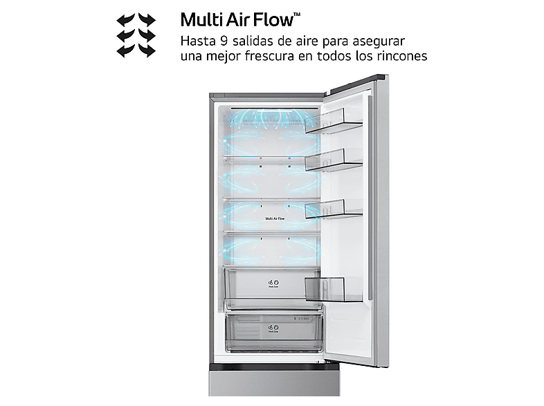 Frigorífico combi - LG GBBSJ21DPY, No Frost, 203 cm, 375 l, DoorCooling+™, Multi Air Flow, Plata