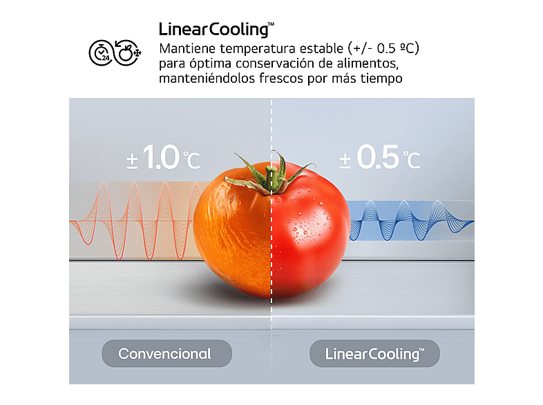 Mantiene temperatura estable (+/- 0.5 ºC) para óptima conservación de alimentos, manteniéndolos frescos por más tiempo.
