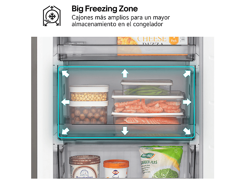 Cajones más amplios para un mayor almacenamiento en el congelador.
