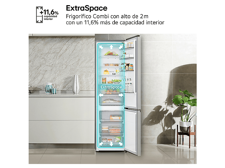 Frigorífico Combi con alto de 2 m con un 11.6% más de capacidad interior.