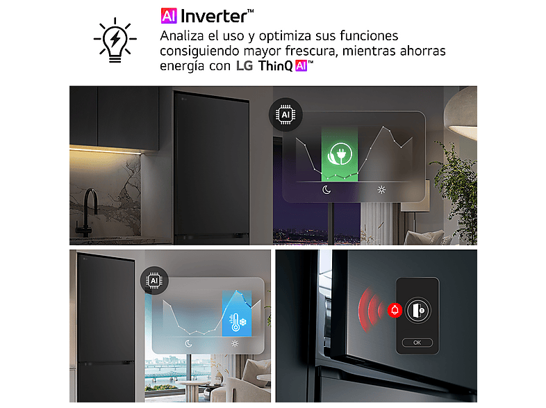 Analiza el uso y optimiza sus funciones consiguiendo mayor frescura, mientras ahorras energía con LG ThinQ AI.