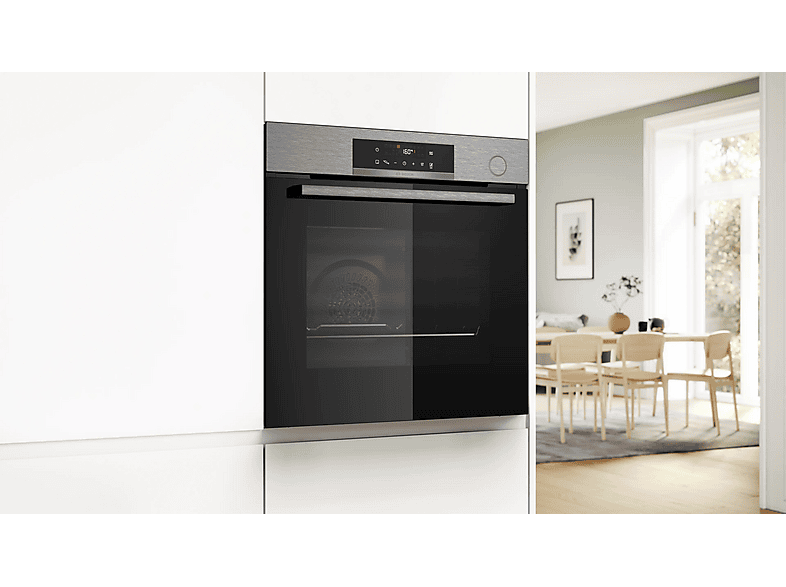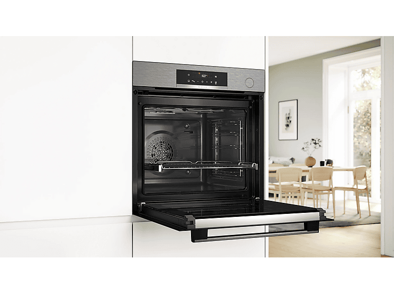Horno a vapor - Bosch HRG572ES3,Serie 4, Multifunción, Pirolítico y por agua, Función Vapor añadido, Función AirFry, Inox