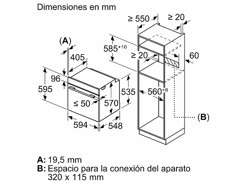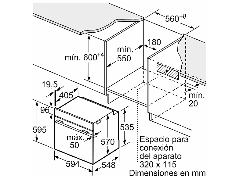 | Altura máxima del hueco | 595 mm |