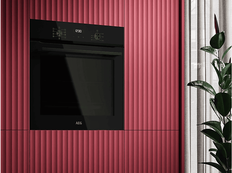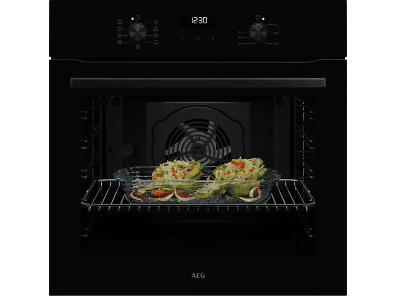 Explora tus recetas con el Horno multifunción AEG TU5AB20WSK. De la Serie 5000 SurroundCook, con Display LED, de 72 litros, 7 funciones, mandos escamoteables Inox, puerta de 2 cristales, cristal negro y tirador negro anodizado.