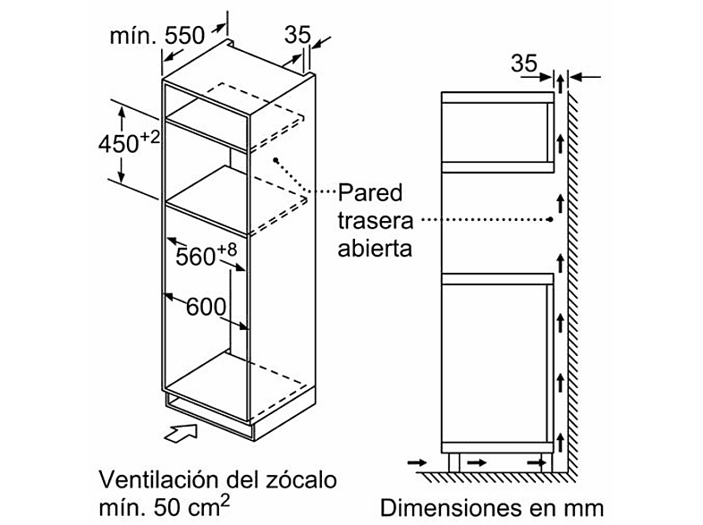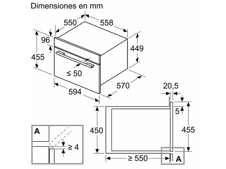 | Dimensiones hueco | 56 cm / 45 cm / 55 cm |