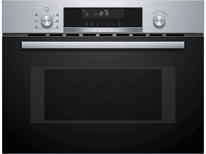 Horno compacto con microondas - Bosch CMA585GS1, Multifunción, Limpieza por agua, 44 l, Mandos ocultables, calentamiento 3D Profesional, 60 cm, Inox