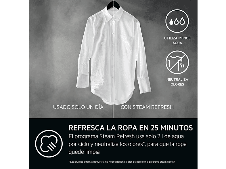 El programa Steam Refresh neutraliza los olores y reduce las arrugas de las prendas, incluso de las más delicadas y en tan sólo 25 minutos.