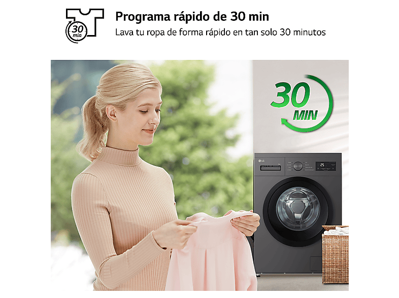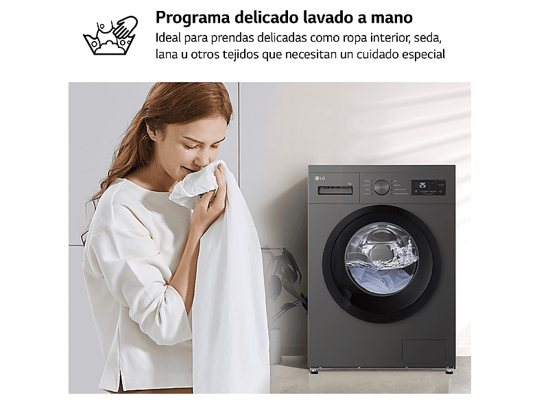 ¡Descubre la lavadora LG F4A10S8NDK, 8 kg y 1400 rpm! Lava en 30 minutos, cuida tus prendas con el programa “lavado a mano”, y ahorra espacio con su fondo reducido de 47 cm. Además, se instala bajo encimera desde 82 cm. ¡Rapidez, cuidado y diseño inteligente!