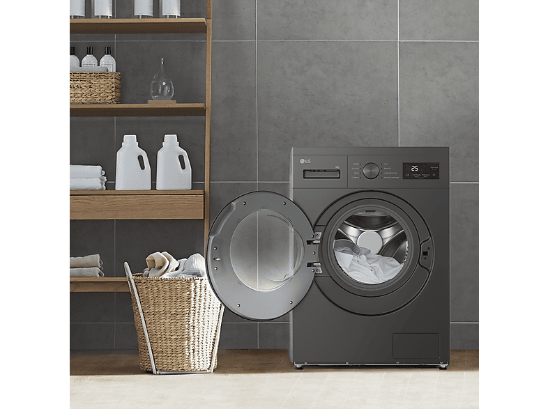 Lavadora carga frontal - LG F4A10S8NDK, 8 kg, 1400 rpm, 8 programas, Grafito Silver