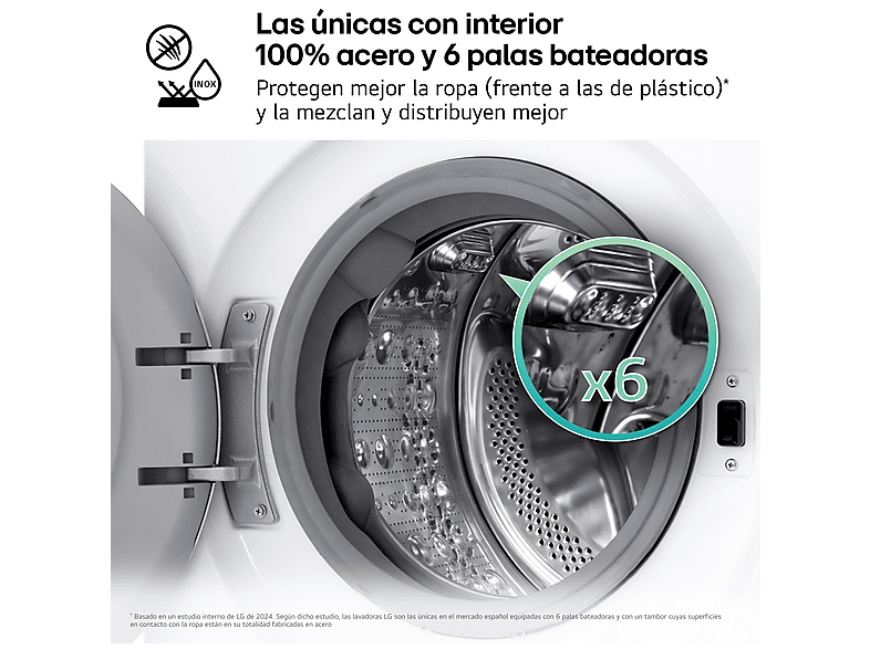 La lavadora carga frontal LG F4X7511TWS, la primera lavadora con inteligencia artificial AI Direct Drive™ que detecta las características del tejido y la carga.