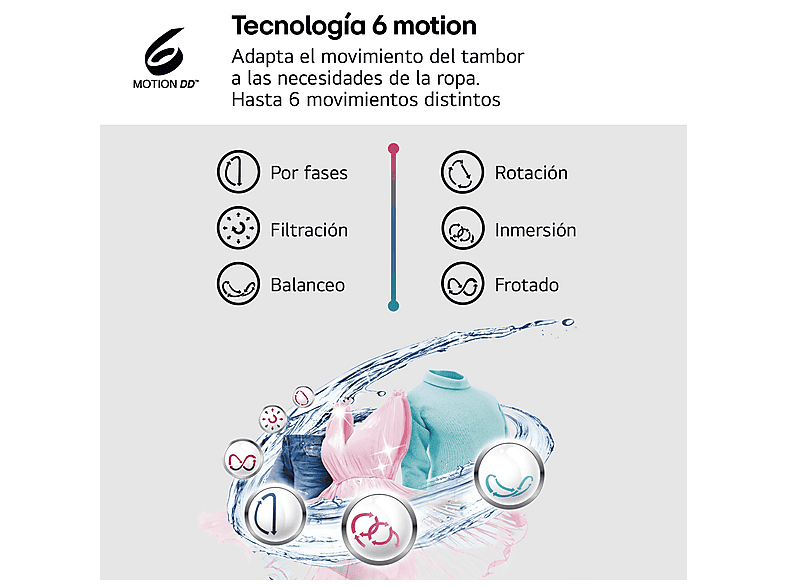Adapta el movimiento del tambor a las necesidades de la ropa. Hasta 6 movimientos distintos.