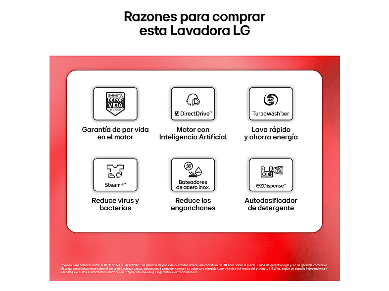 | ¿Por qué es BetterWay? | Las lavadoras BetterWay son más sostenibles en su uso, ya que requieren una menor cantidad de energía para el lavado. Esto no solo es mejor para el medioambiente, sino también para su bolsillo. Una lavadora BetterWay se distingue por tener una clase energética de al menos A, una clase de eficiencia de centrifugado de A o B, una detección de carga o una función de dosificación automática. Estas funciones ayudan a la lavadora a adaptar el uso de agua o detergente a la carga de lavado en el tambor. |