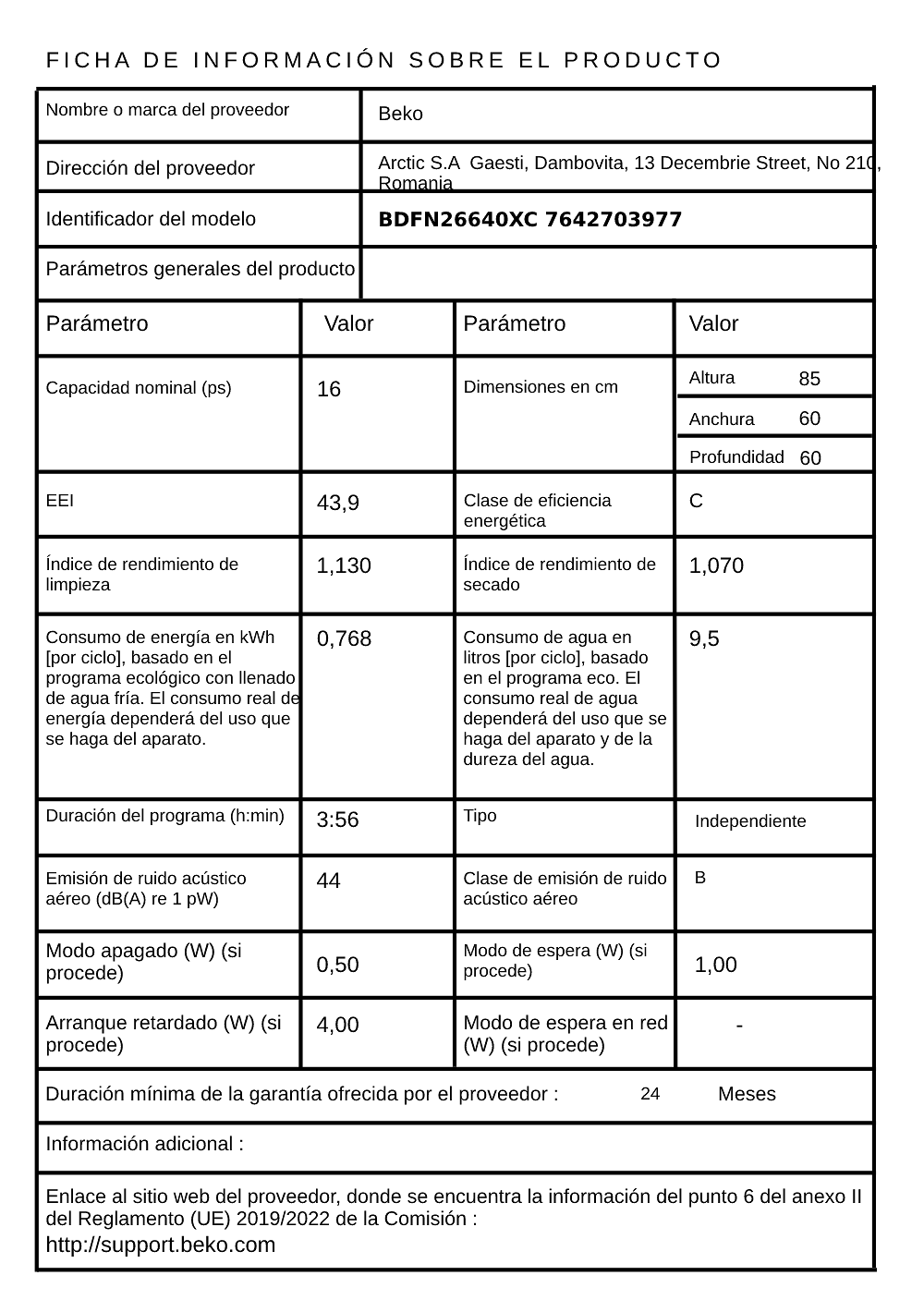| Clase de eficiencia energética (EU 2017/1369) | C |