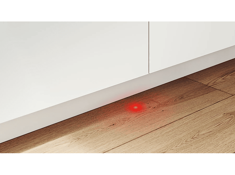 InfoLight consiste en una proyección de luz LED roja en el suelo de tu cocina que te informa si tu lavavajillas totalmente integrable continúa en funcionamiento. Sabrás que el programa ha finalizado porque la luz que se proyecta desaparece.