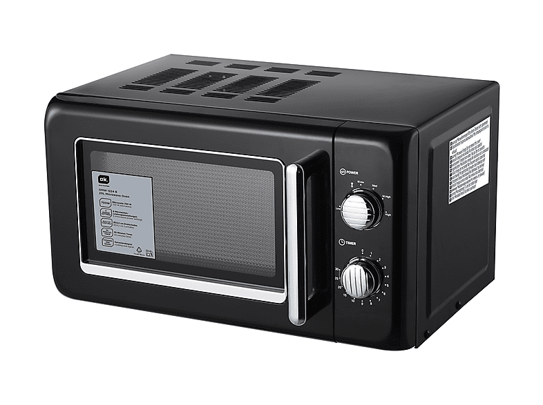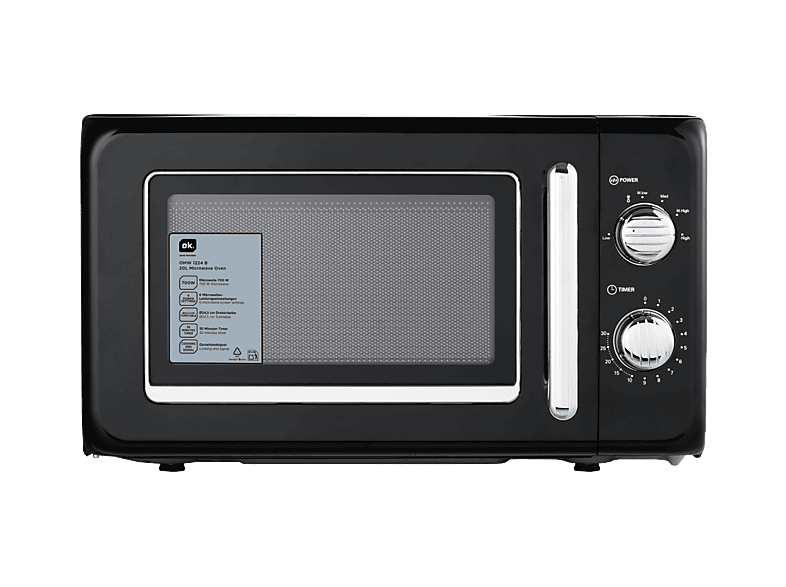 Microondas - ok. OMW 1224 B, 700W, 6 Niveles de Potencia, 20l, Función Descongelar, Control Mecánico, Negro