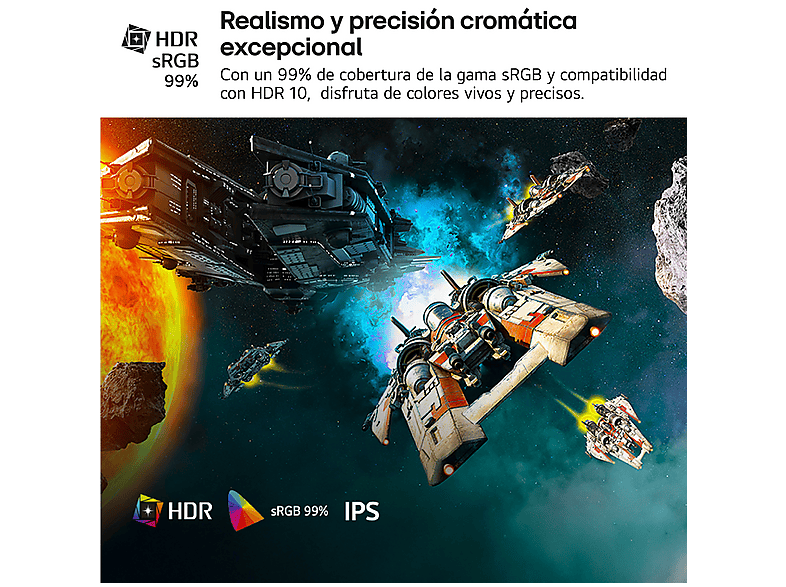 Con un 99% de cobertura de la gama sRGB y compatibilidad con HDR 10, disfruta de colores vivos y precisos.