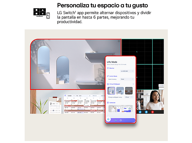 LG Switch app permite alternar dispositivos y dividir la pantalla en hasta 6 partes, mejorando tu productividad.
