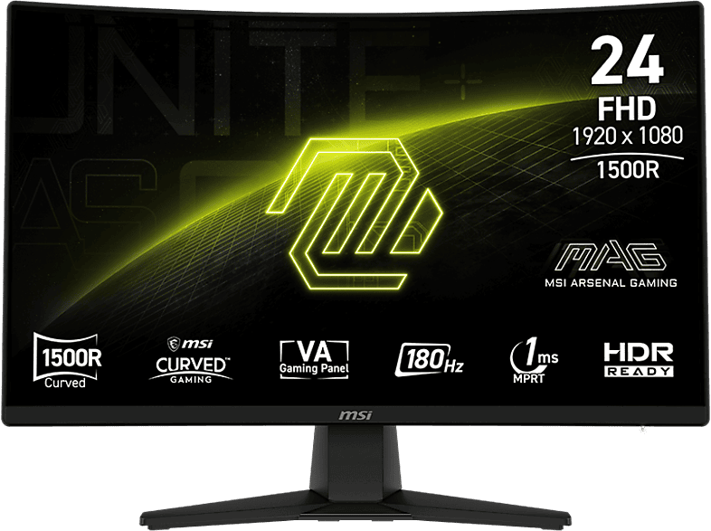 Monitor gaming - MSI MAG 242C, 23.6" Full-HD, 180Hz, 1 ms MPRT, VA, Curve 1500R, HDR Ready, Negro