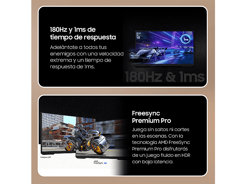 Frecuencia de actualización de 180 Hz y tiempo de respuesta de 1 ms (MPRT)