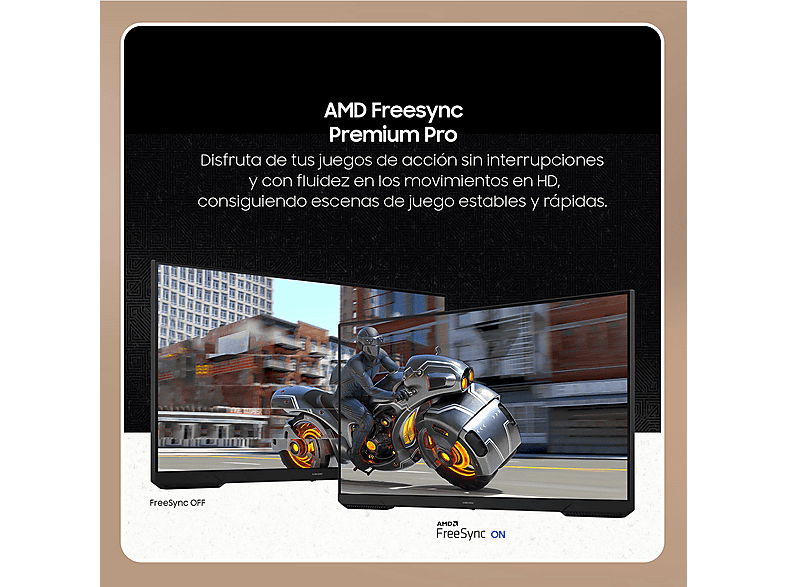 Experimenta juegos de acción sin interrupciones. Con AMD FreeSync Premium Pro, disfrutarás de una fluidez impresionante, incluso en las escenas más rápidas, para una experiencia de juego estable y rápida.
