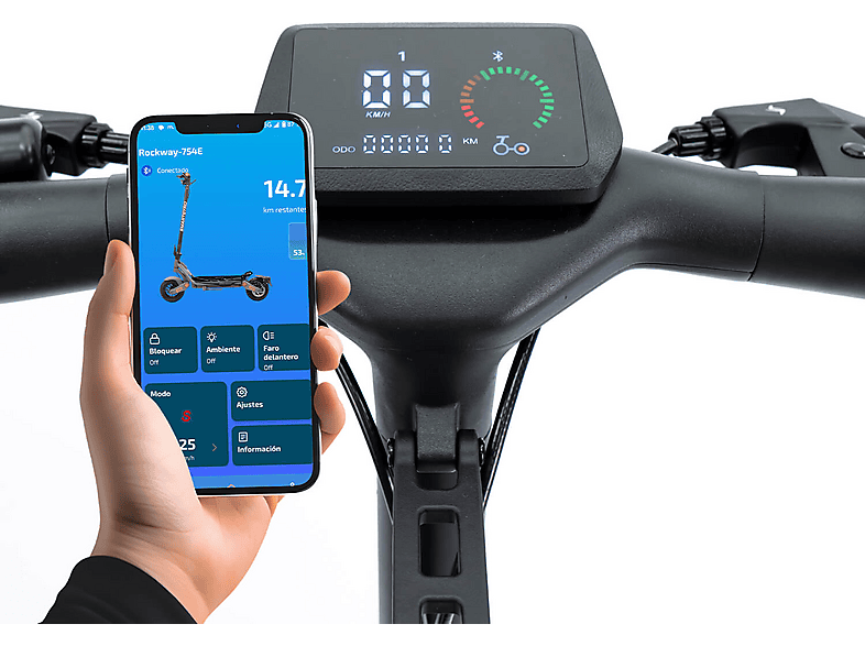 Potencia, tecnología y seguridad para cada trayecto con el patinete eléctrico smartGyro Rockway EVO. Ofrece hasta 50 km de autonomía con motor brushless, batería de 13000 mAh y tecnología Core Inside para optimizar rendimiento. Incluye doble suspensión, frenos seguros, ruedas de 10" y control por APP con bloqueo NFC.