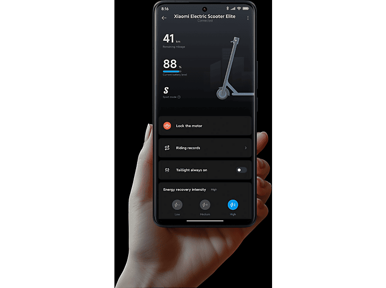 El Xiaomi Electric Scooter Elite está equipado con un motor de 400W, alcanzando una potencia máxima de 700W. Con una velocidad máxima de 25 km/h y una autonomía de hasta 45 km, es una excelente opción para trayectos urbanos. Su capacidad de ascenso de 20% permite superar pendientes con facilidad, asegurando una conducción estable en todo momento.