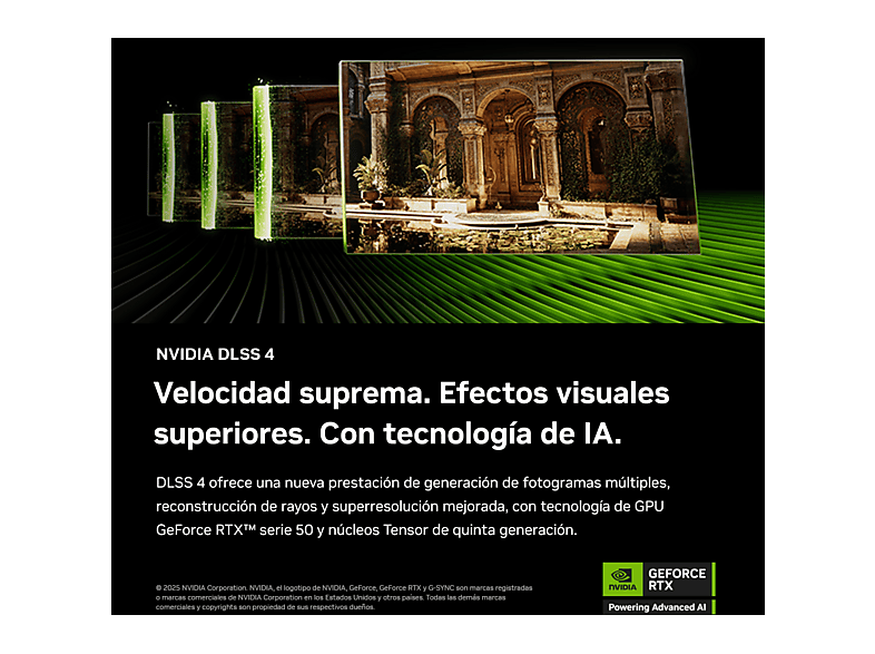 Con tecnología de NVIDIA Blackwell, las GPU GeForce RTX™ serie 50 ofrecen capacidades revolucionarias a jugadores y creadores. Equipada con una increíble potencia de IA, la RTX serie 50 abre el camino hacia nuevas experiencias y ofrece fidelidad gráfica de siguiente nivel. Multiplica el rendimiento con NVIDIA DLSS 4, genera imágenes a una velocidad sin precedentes y libera tu creatividad con NVIDIA Studio.