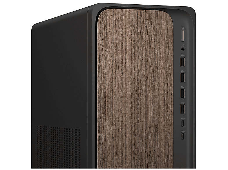 El elegante diseño de este ordenador no solo es atrevido, sino que además resulta muy práctico gracias a sus cómodos puertos USB 2.0, USB 3.2 Gen 1 y Gen 2, USB-C, Ethernet y conexiones de audio frontales y traseras.