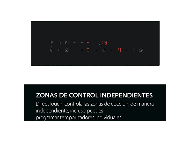 Los mandos táctiles individuales permiten ajustar de forma rápida e intuitiva cada zona de cocción. Solo necesitas colocar la sartén o la olla y regular el calor con los botones + o –, logrando siempre la cocción exacta para unos resultados deliciosos.