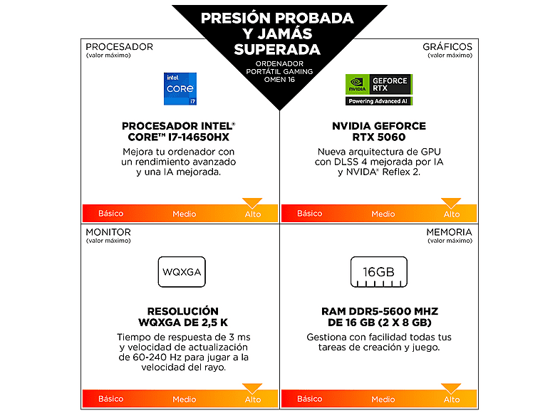 Pensado para ofrecer velocidad, eficiencia y multitarea de alto nivel, el OMEN 16-ap0004ns cuenta con 32 GB de memoria RAM DDR5 a 5600 MT/s, lo último en rendimiento para gaming, creación de contenido o trabajo avanzado. Su unidad SSD PCIe Gen4 NVMe™ de 1 TB proporciona arranques ultrarrápidos, cargas instantáneas de aplicaciones y transferencia de archivos sin esperas. Almacena juegos pesados, vídeos, proyectos y más, sin preocuparte por el espacio.