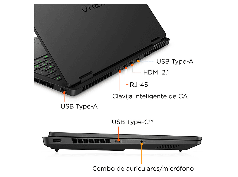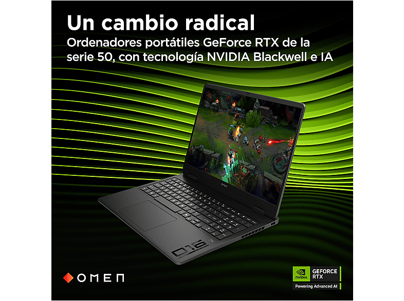 Portátil gaming - HP OMEN Gaming Laptop 16-ap0004ns Copilot+ PC, 16", AMD Ryzen™ AI 7 350, 32 GB RAM, GeForce RTX™ 5050, Sin sistema operativo, Negro