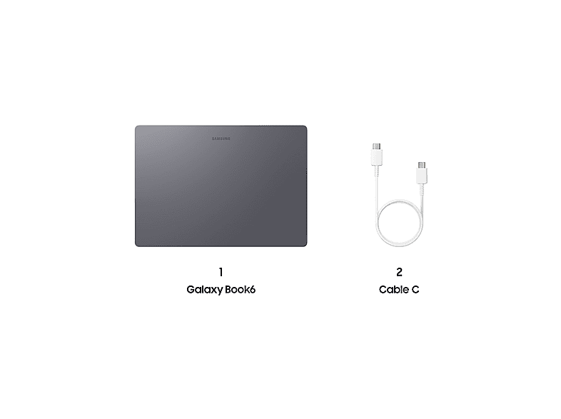 1x Galaxy Book6, 1x Cable-C, (Cargador no incluido) |