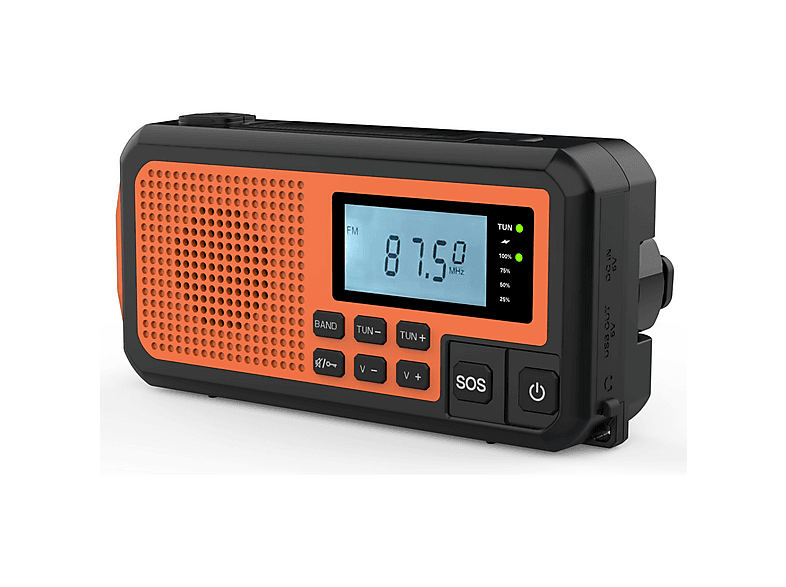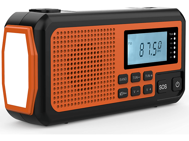 Radio portátil - NK FA350044, Altavoz 3W, Linterna, ABS, AM/FM/SW, DC5V 2A/Panel solar/Baterías AAA, Pantalla LCD, Naranja