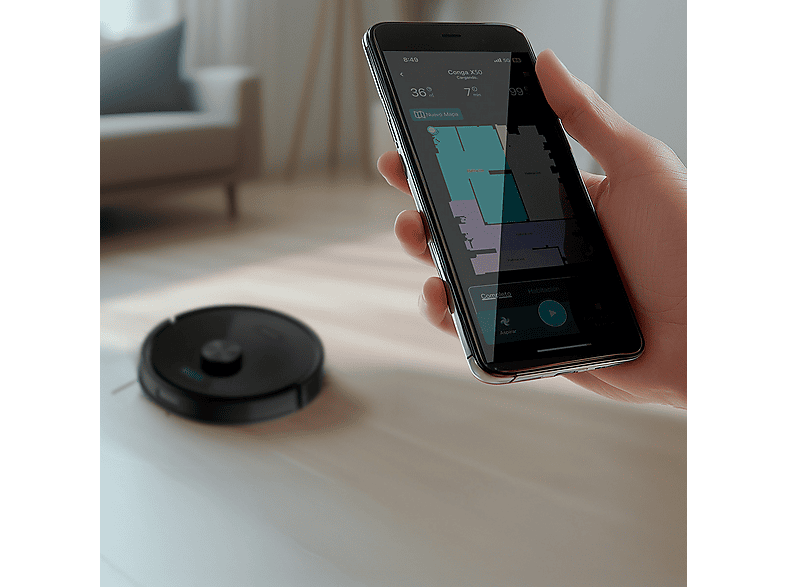 Descubre la potencia y precisión del robot aspirador Conga M50: limpia hasta 160 m² con navegación láser, 5000 Pa de succión y control total desde tu móvil.