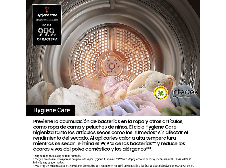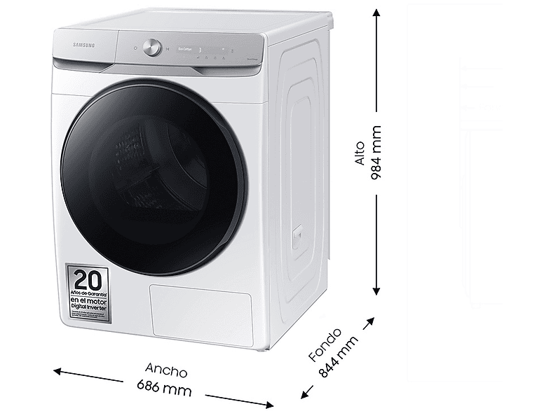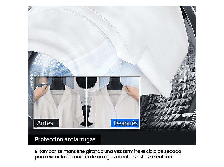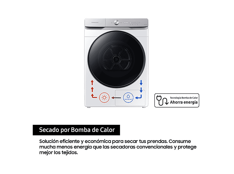 Samsung DV16DG8600BWU3: seca hasta 16 kg con cuidado experto, máxima eficiencia y 21 programas para cada necesidad. Tecnología de bomba de calor que ahorra energía sin renunciar al rendimiento.