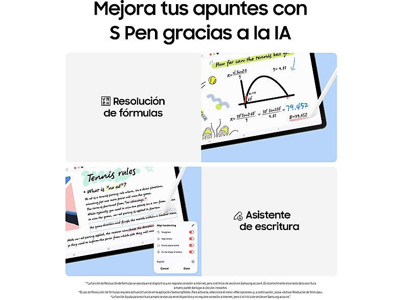 La Galaxy Tab S10 FE incorpora Galaxy AI para potenciar tu creatividad y productividad. Con Circle to Search, encuentra información al instante. El AI Key te da acceso rápido a funciones avanzadas. Toma notas más inteligentes con la conversión automática de manuscritos a digital y resuelve fórmulas fácilmente. Además, SmartThings convierte tu tablet en el centro de control de tu hogar, permitiéndote gestionar dispositivos desde la pantalla principal.