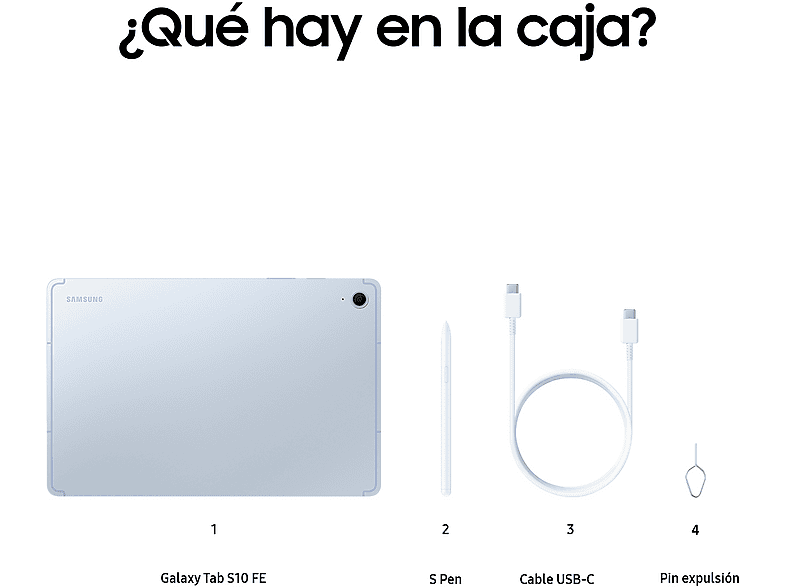 1x Tablet, 1x Cable USB-C a USB-C, 1x S Pen, 1x Manual de instrucciones, 1x Clavija de expulsión |