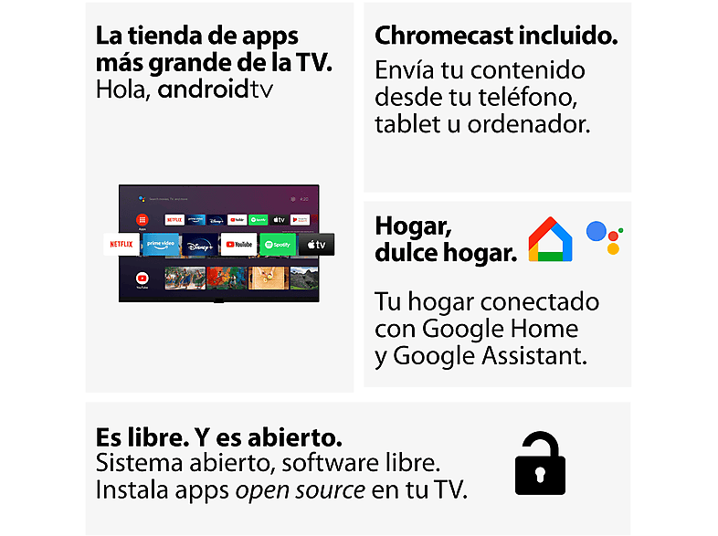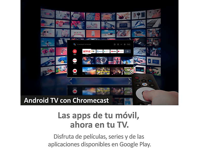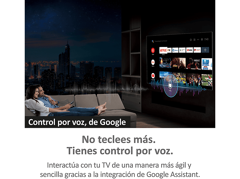 Con la implementación interna de Android TV como sistema operativo, podrás disfrutar del mejor contenido en cualquier momento. Ya sea películas, series o cualquiera de las aplicaciones disponibles en Google Play. Adicionalmente, puedes transmitir tu contenido al televisor desde cualquier aplicación compatible con Chromecast para Android TV.